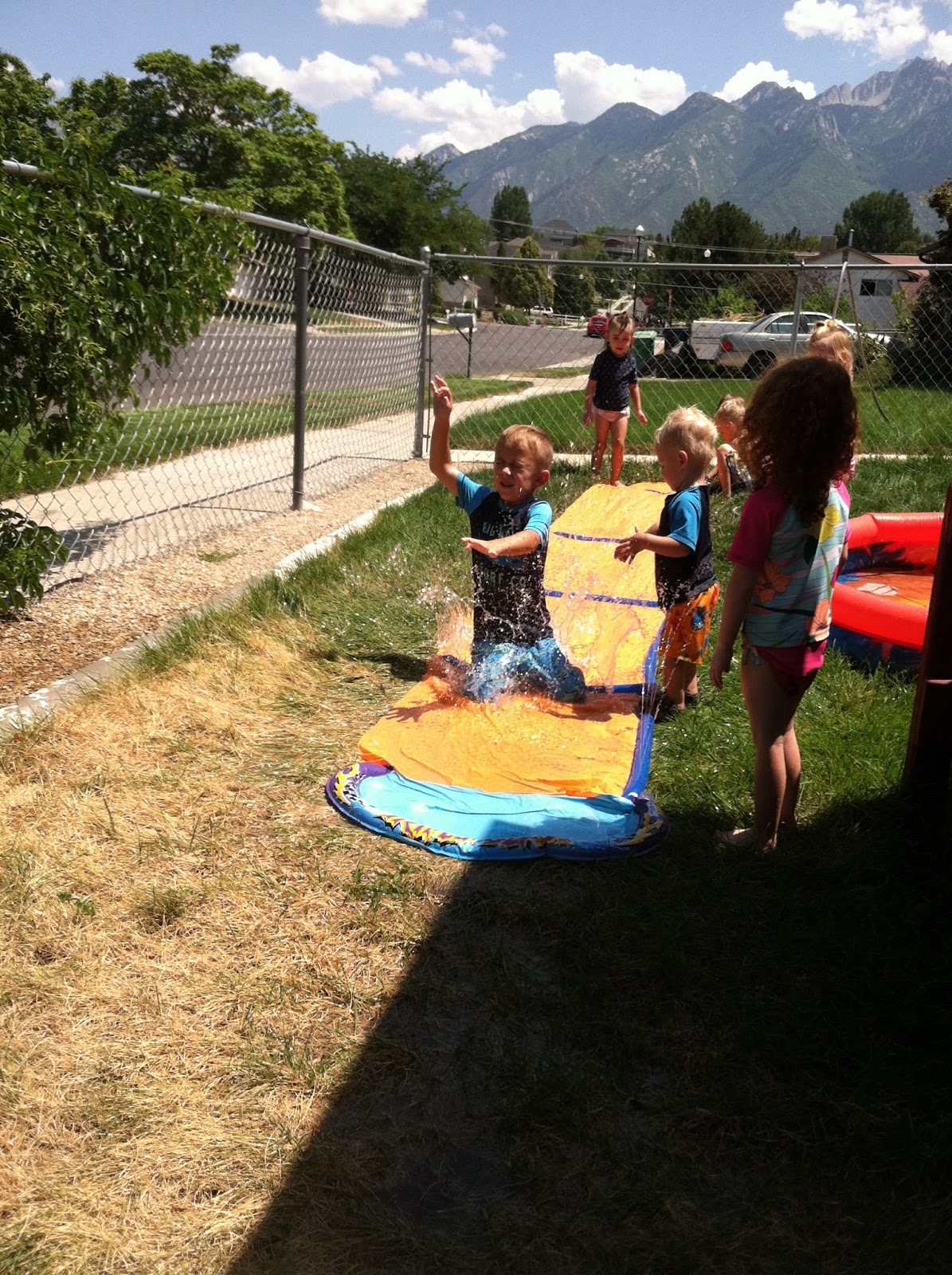 The sprinklers came on so we the kids got an extra water day!